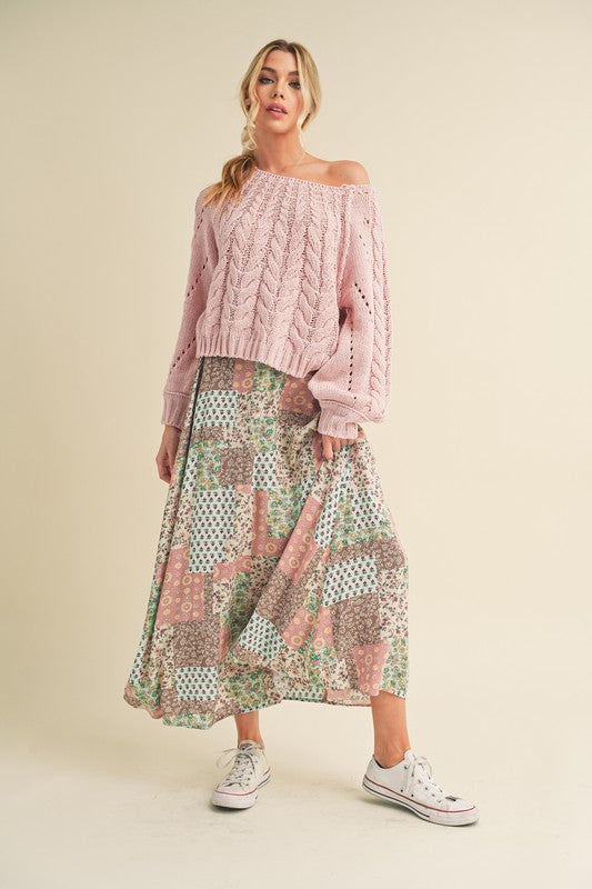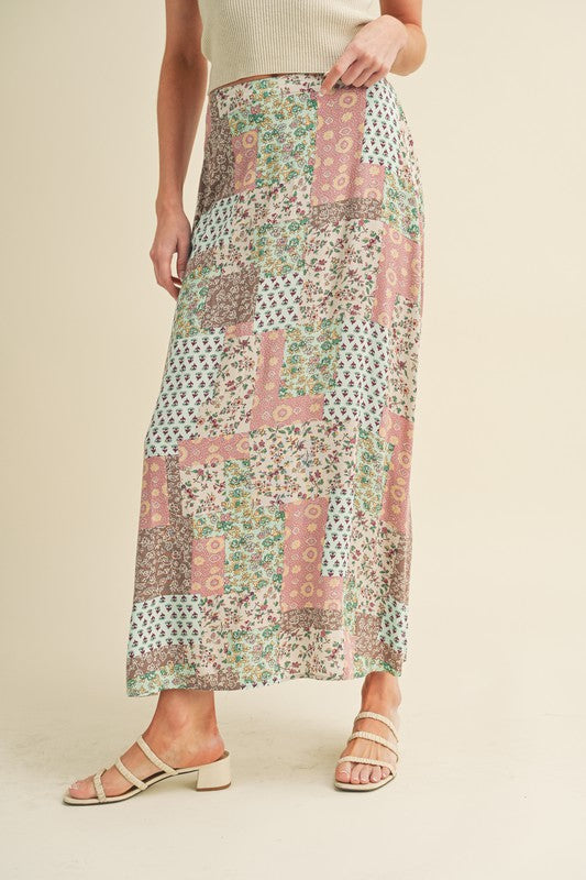 Aemi + Co Printed Maxi Skirt - mint/pink