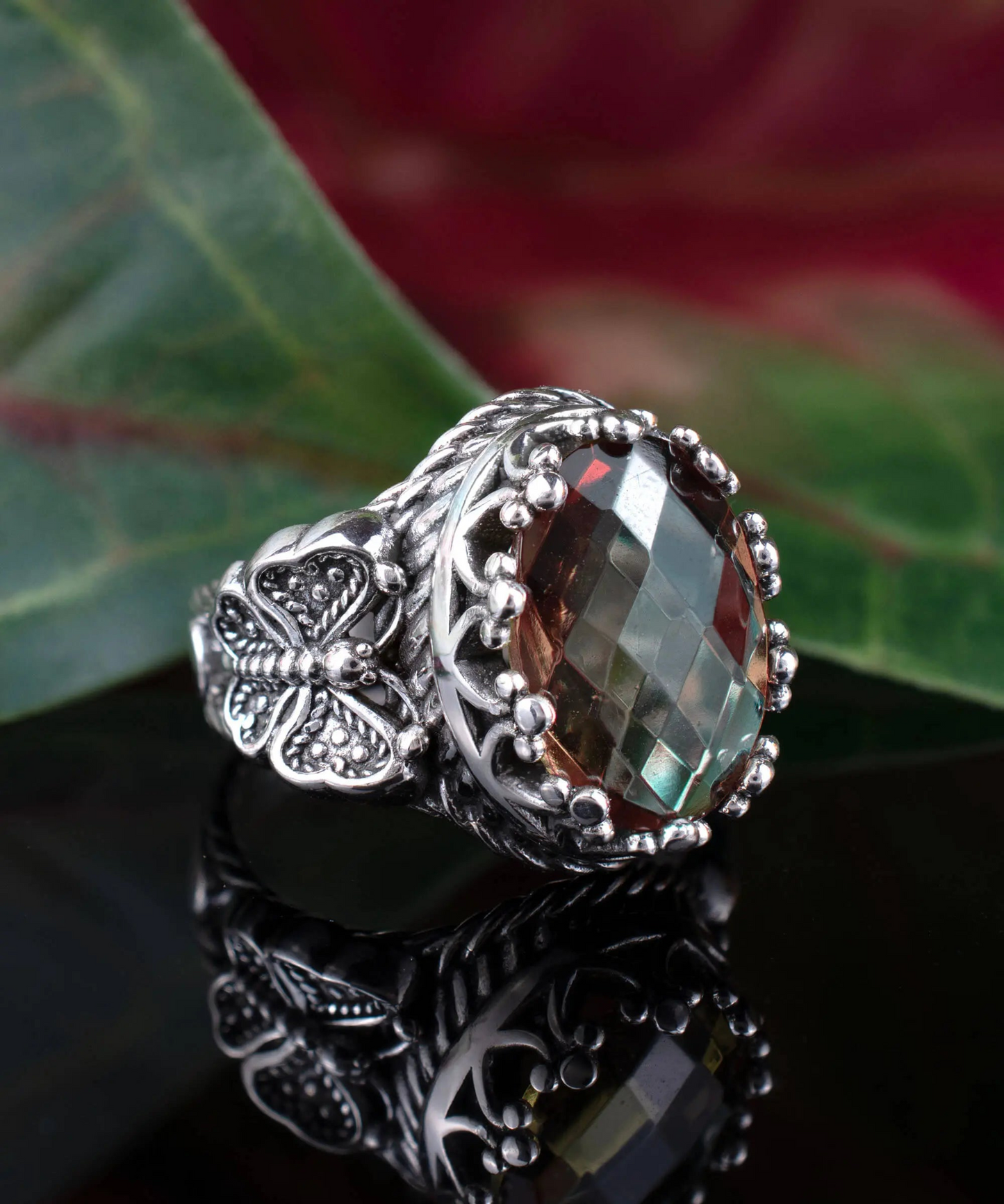- Whimsical Double Butterfly Detailing: Embellished with intricate butterfly motifs, this ring symbolizes transformation and joy. The filigree art adds depth and elegance, making it a standout accessory.