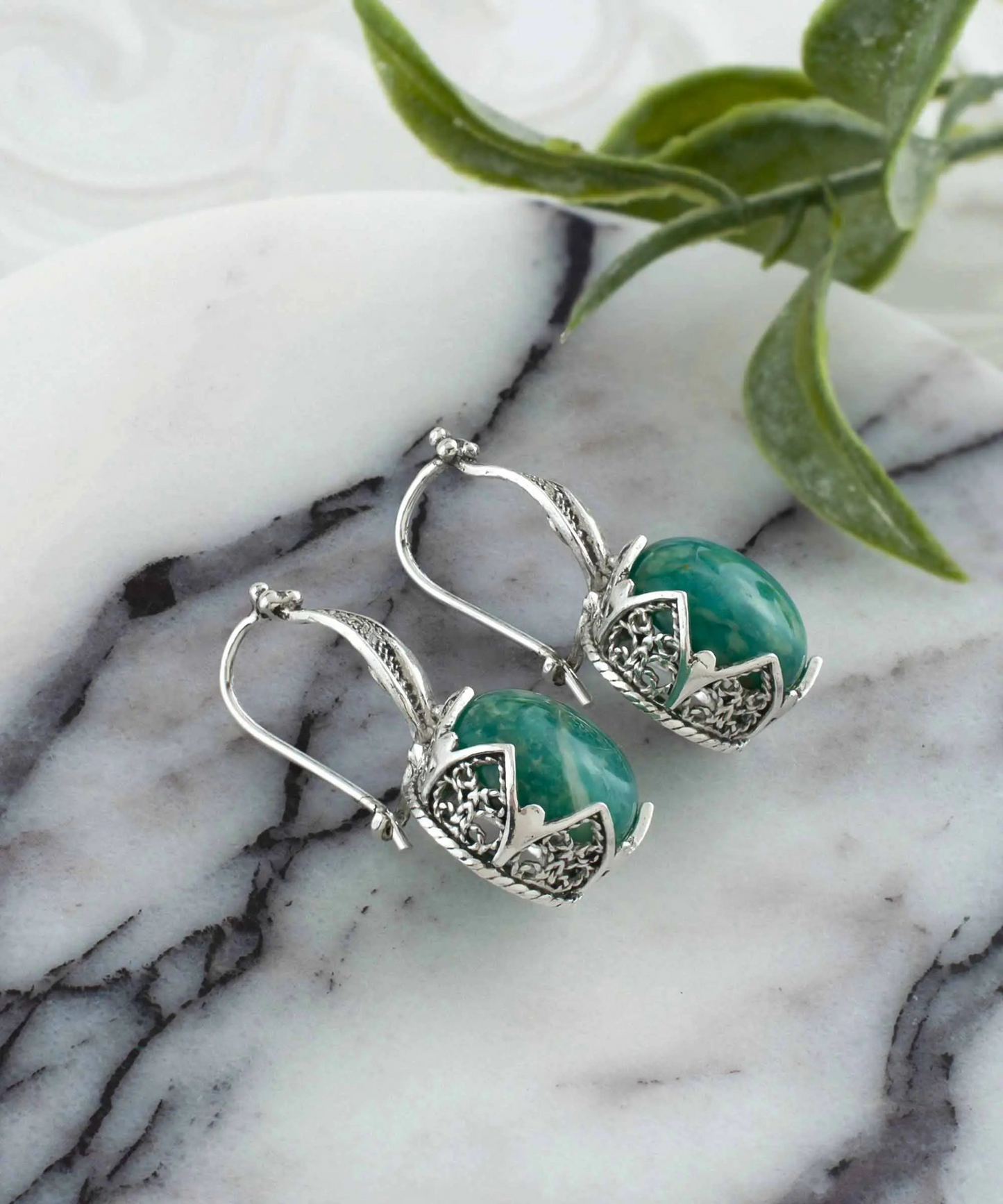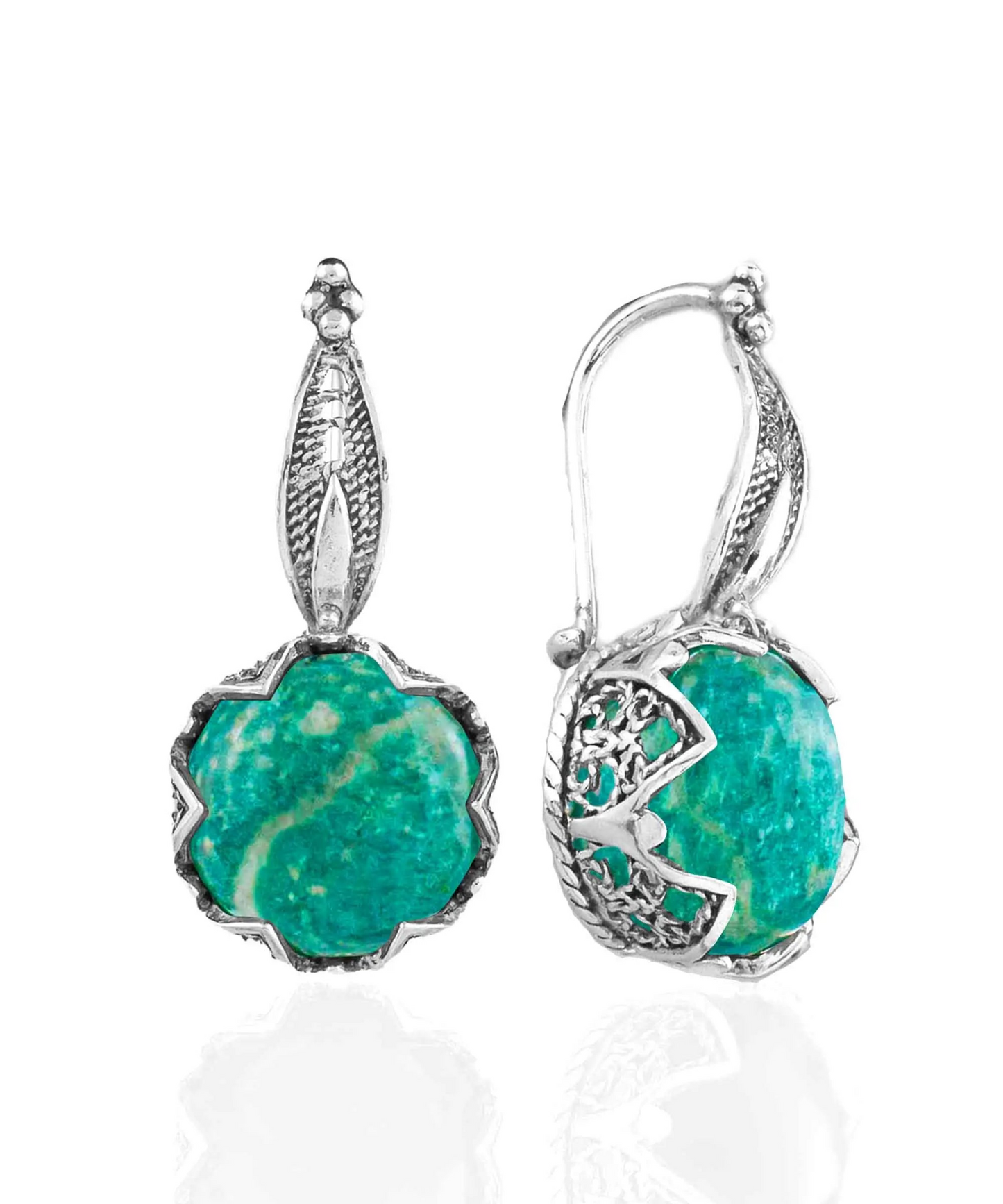 Elevate your style with our Artful Filigree Flower Pattern Amazonite Gemstone Sterling Silver Woman Drop Earrings and experience the enduring allure of handcrafted jewelry. Reserve your pair now and celebrate beauty, elegance, and serenity.