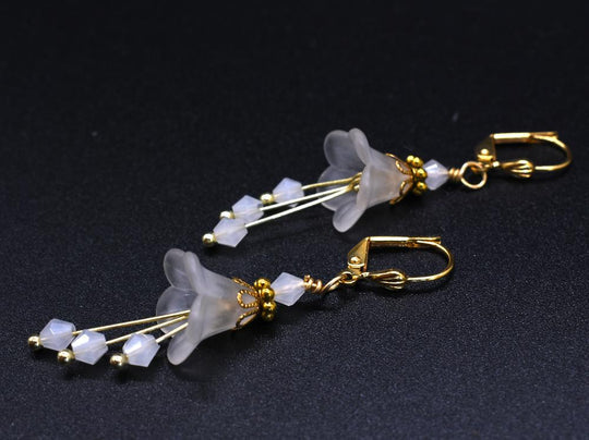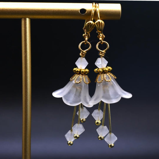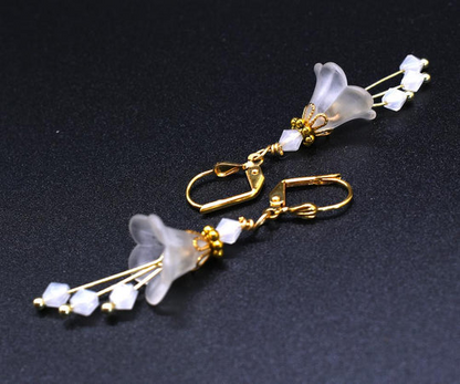 Chic Brico Bell Flower Bridal Earrings - White and Gold
