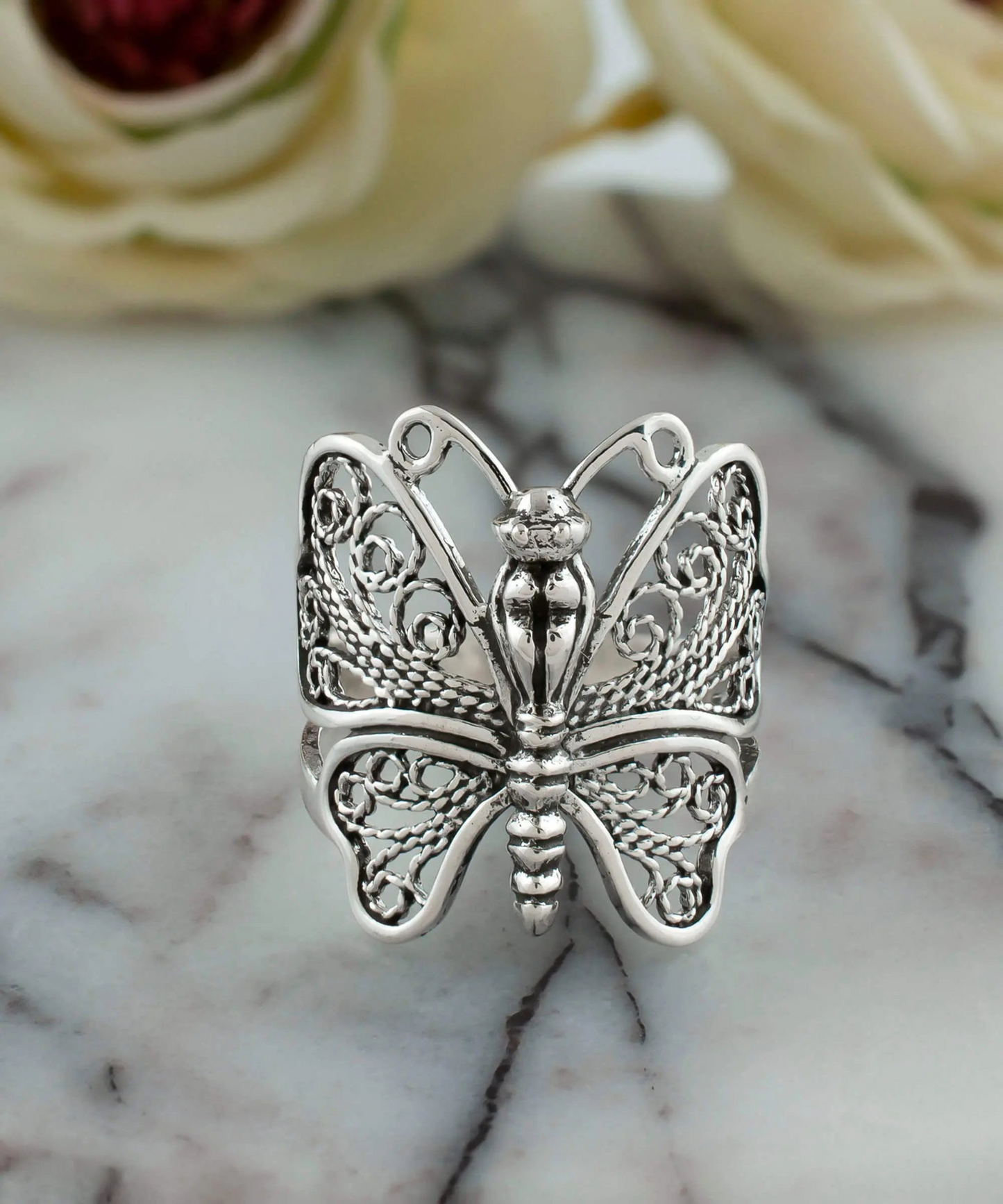 Introducing the Filigree Art Butterfly Design Women's Silver Statement Ring, a handcrafted jewel that encapsulates the essence of ethereal beauty and masterful artistry. This exquisite ring is not just an accessory; it's a wearable piece of art, designed to enchant and captivate with its intricate details and impeccable craftsmanship.