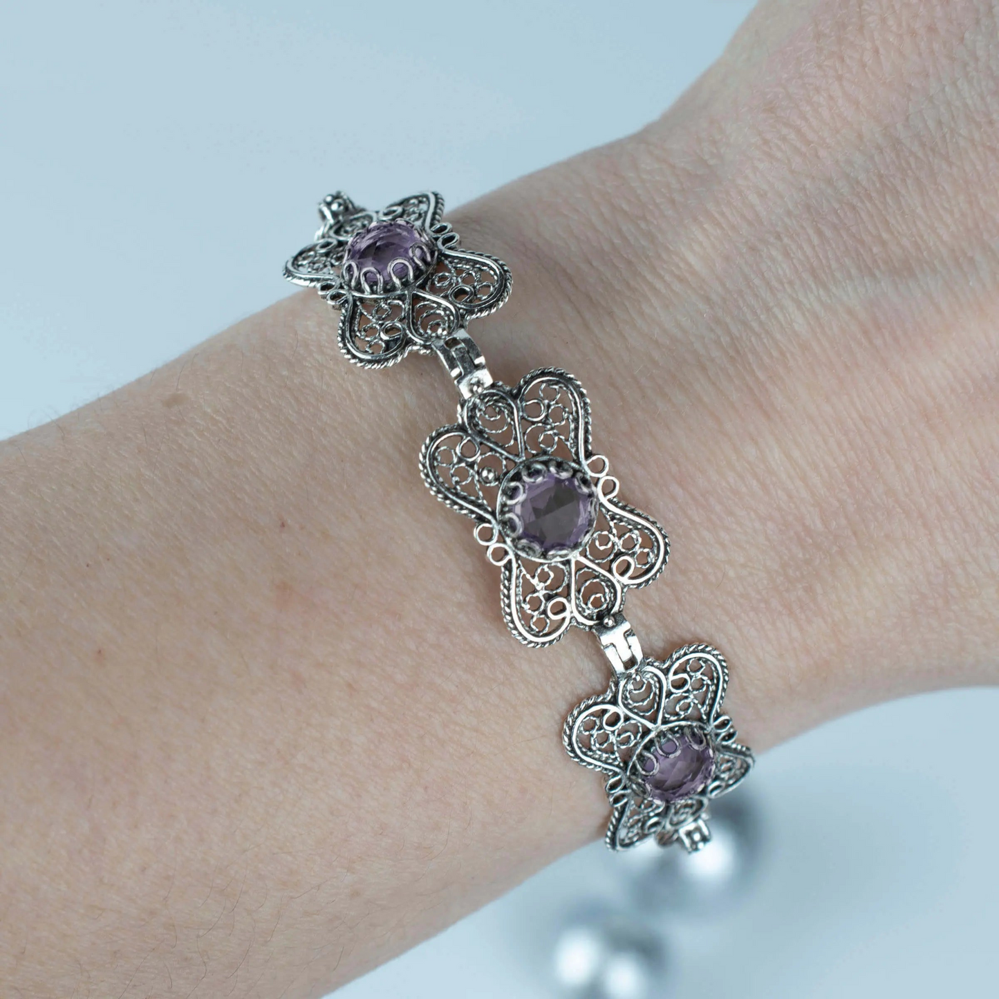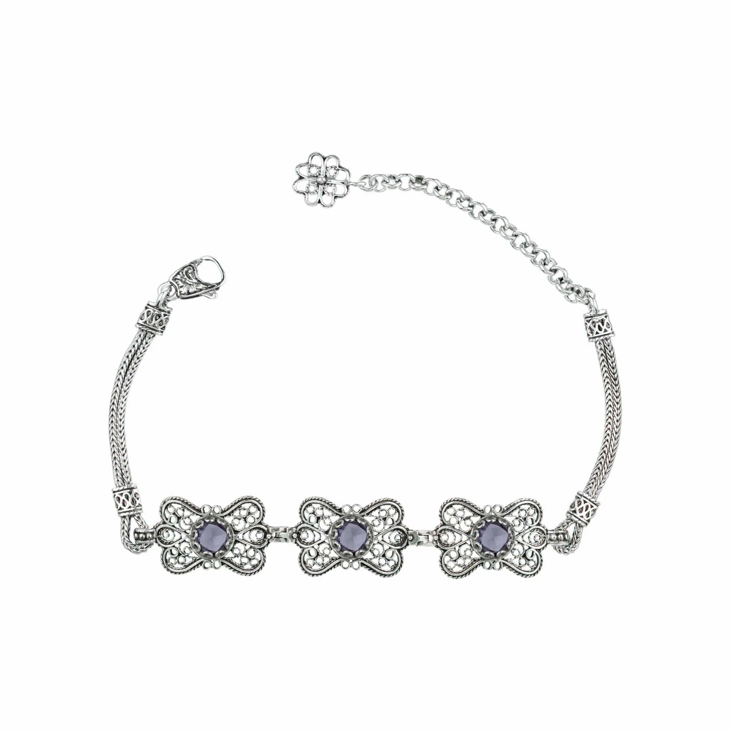 FiligranIst - Filigree Art Amethyst Gemstone Women Butterfly Silver Link Bracelet