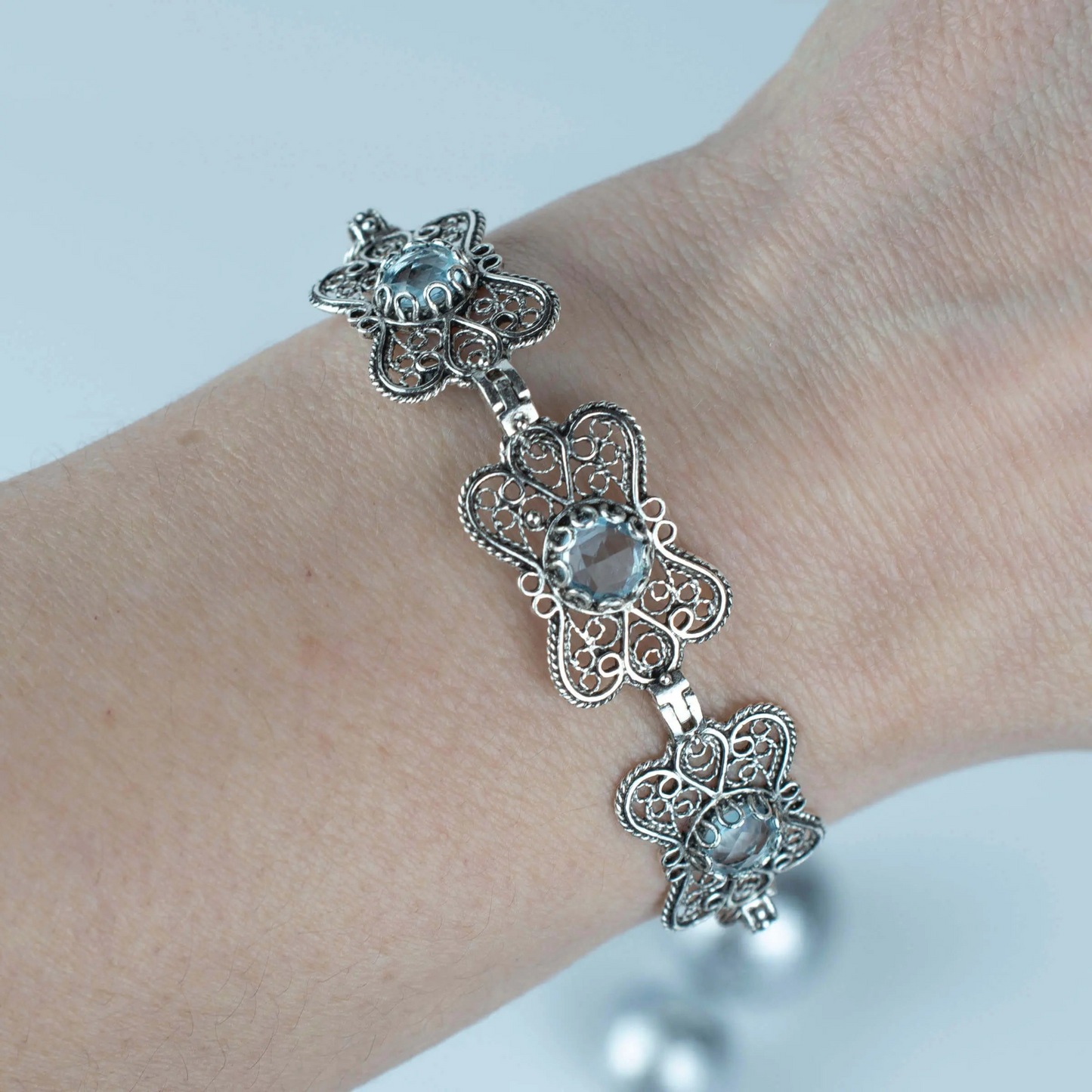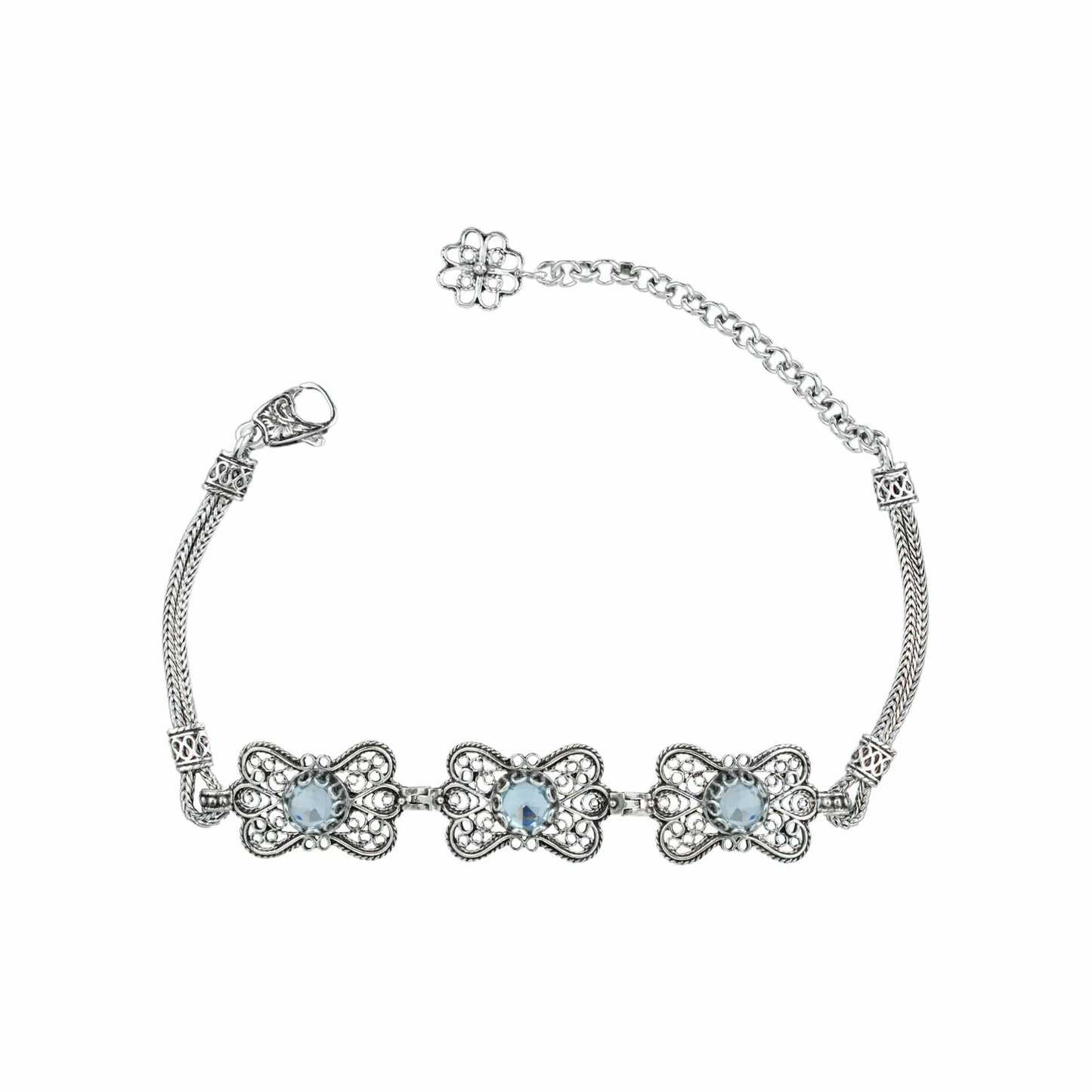 FiligranIst - Filigree Art Blue Topaz Gemstone Women Butterfly Silver Link Bracelet