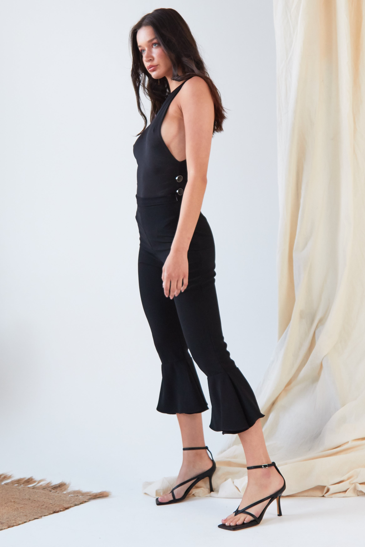 Elevate your work-to-weekend style with the Ashlee Black Frill Hem Trousers—a sleek, high-waisted design that takes you seamlessly from the office to after-work drinks. Crafted from a breathable woven fabric, these trousers sit comfortably at the waist and feature a dramatic frill cuff for an unforgettable statement. Their 3/4 length and side zip closure strike just the right balance between professional and playful, making Ashlee a versatile must-have in any wardrobe.